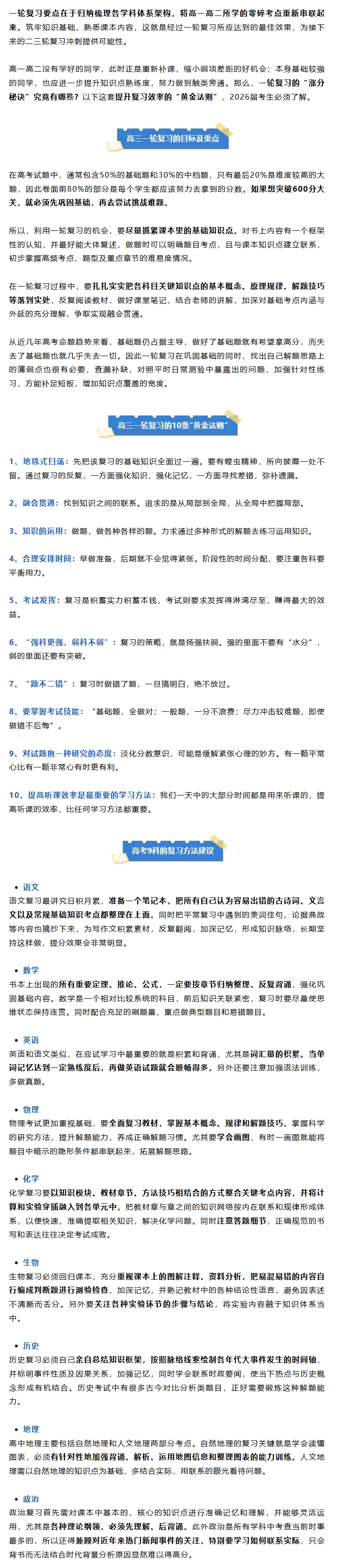 高三一轮复习“黄金法则”,9大学科高效备考技巧!