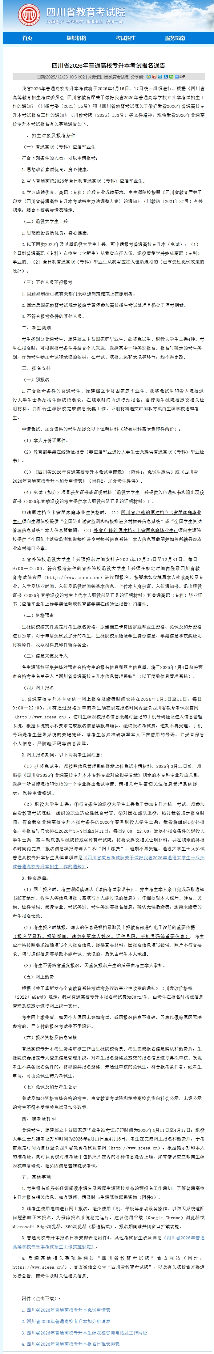 四川省2026年普通高校专升本考试报名通告-四川省教育考试院